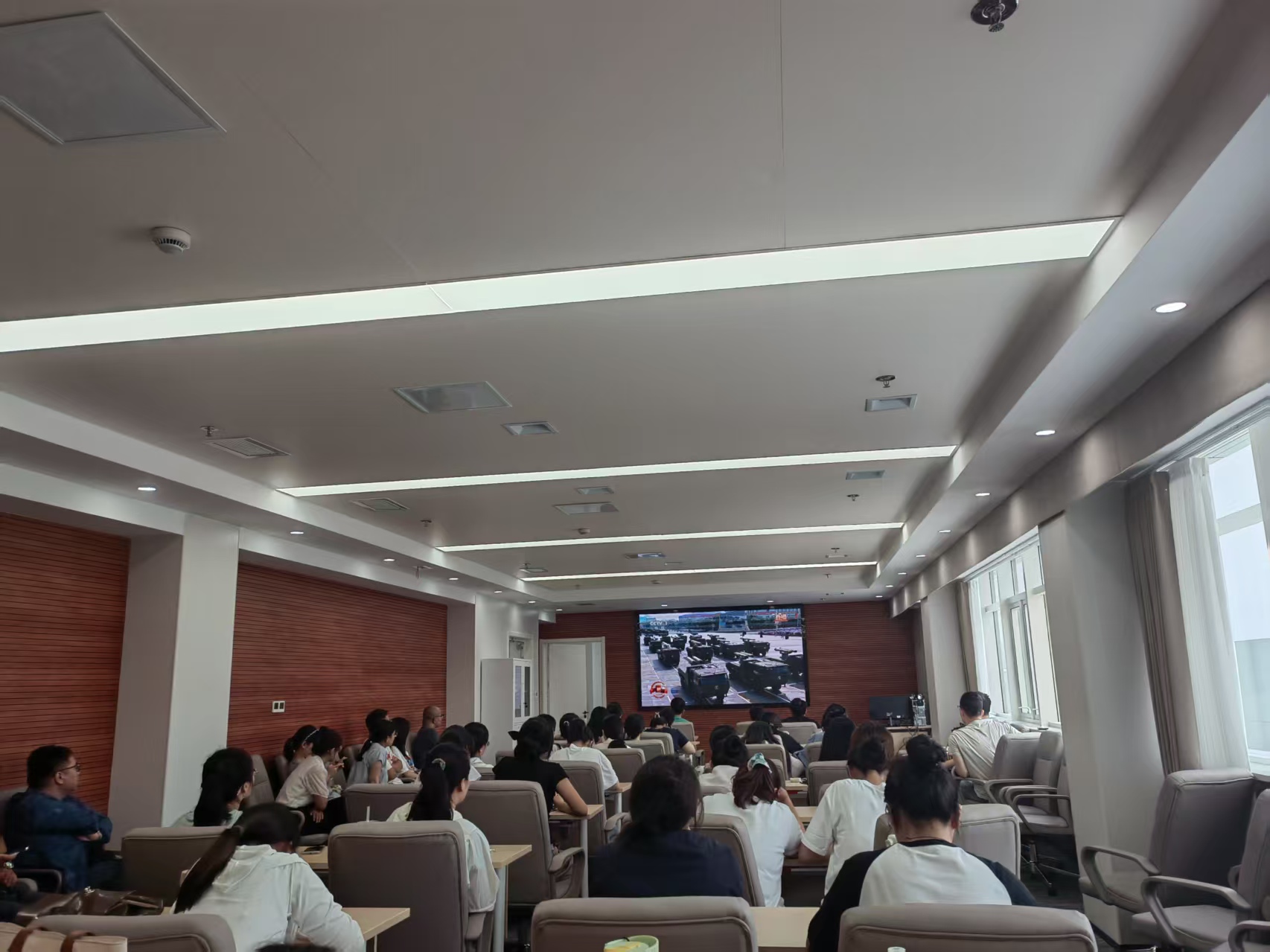 观看过程中,全体人员全神贯注,屏息凝神,专心聆听习近平总书记重要讲话,回顾艰苦卓绝的抗战之路与伟大胜利,铭记伟大抗战精神。通过直播镜头,看到受阅部队官兵们整齐划一的步伐、铿锵有力的口号、威武雄壮的气势、英姿飒爽的风貌,以及一系列自主研发、技术先进的现代化武器装备,全体职工为人民军队的强大感到震撼,为国家科技的飞速进步感到欣喜,更为祖国日益提升的综合国力和国际地位感到无比骄傲,同时,也更加坚定了为国家繁荣富强而努力奋斗的决心。